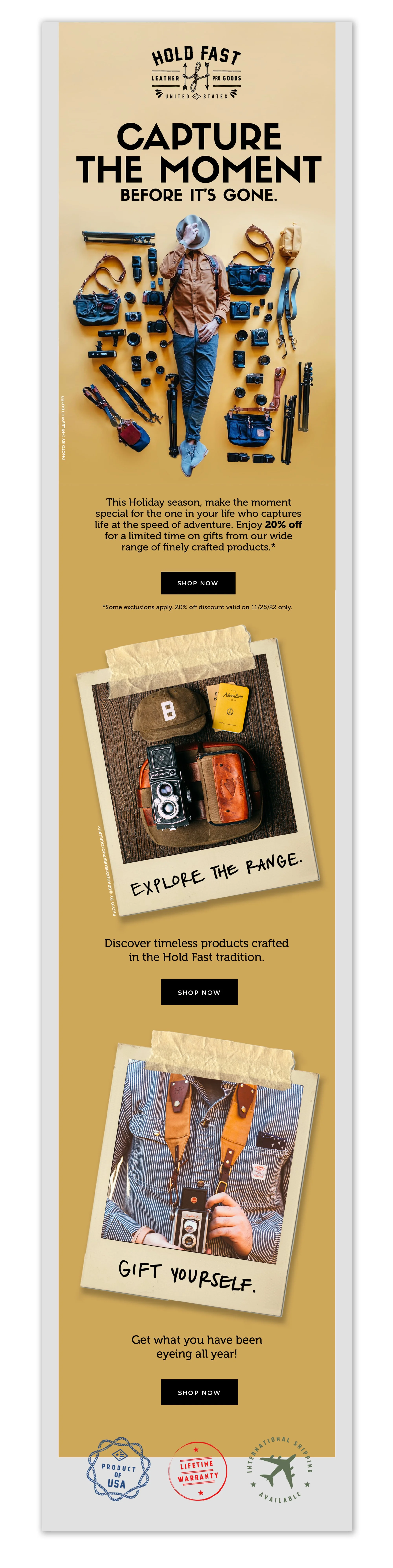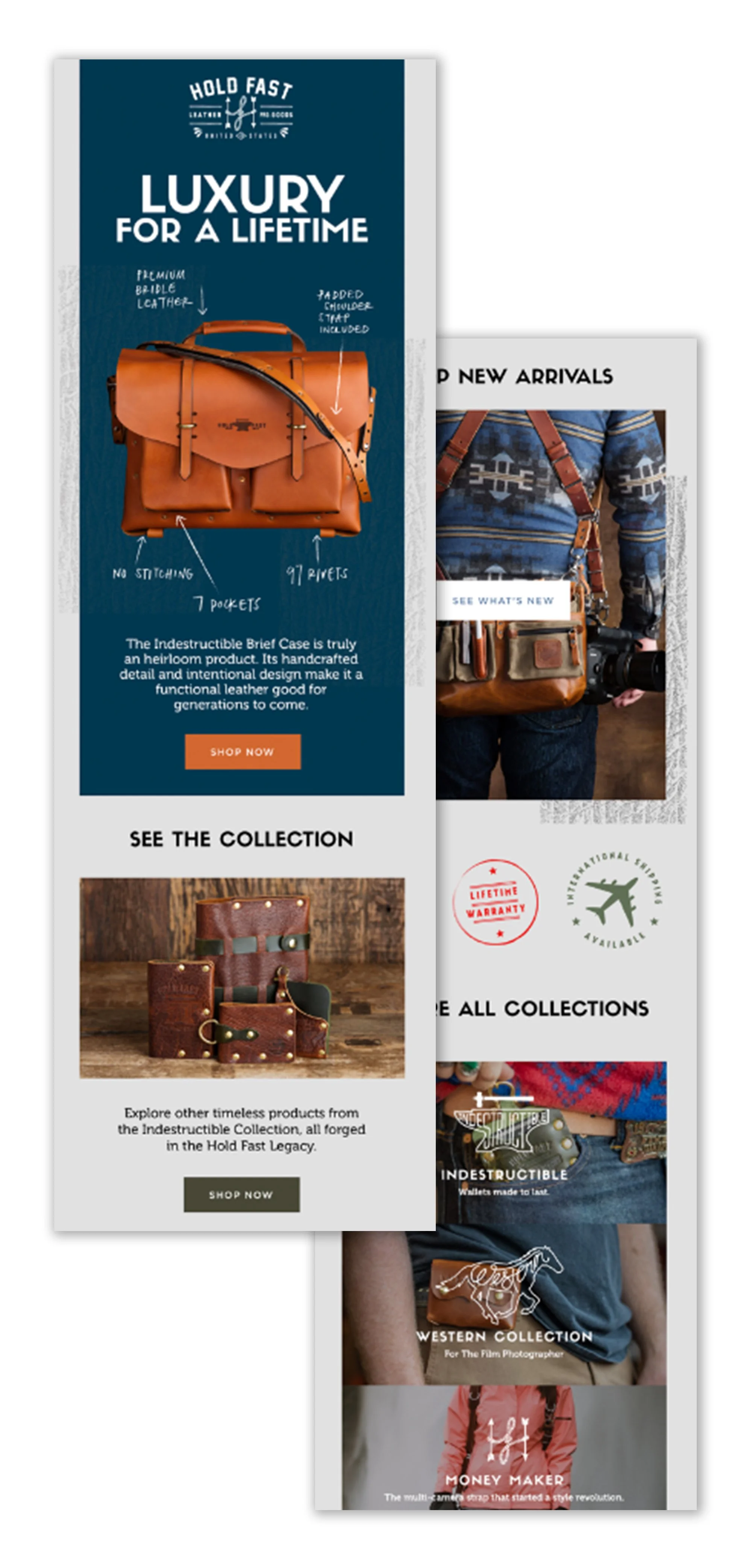 I had the pleasure of partnering with HoldFast Gear to create monthly email marketing campaigns for their wide range of handmade leather goods.